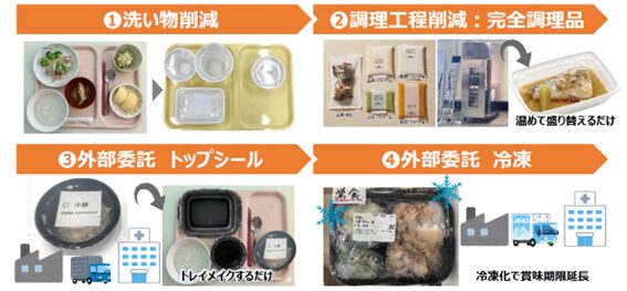 - トップシールの活用: 外部で作られた食事を、「トップシール」技術で衛生的にトレイメイク。